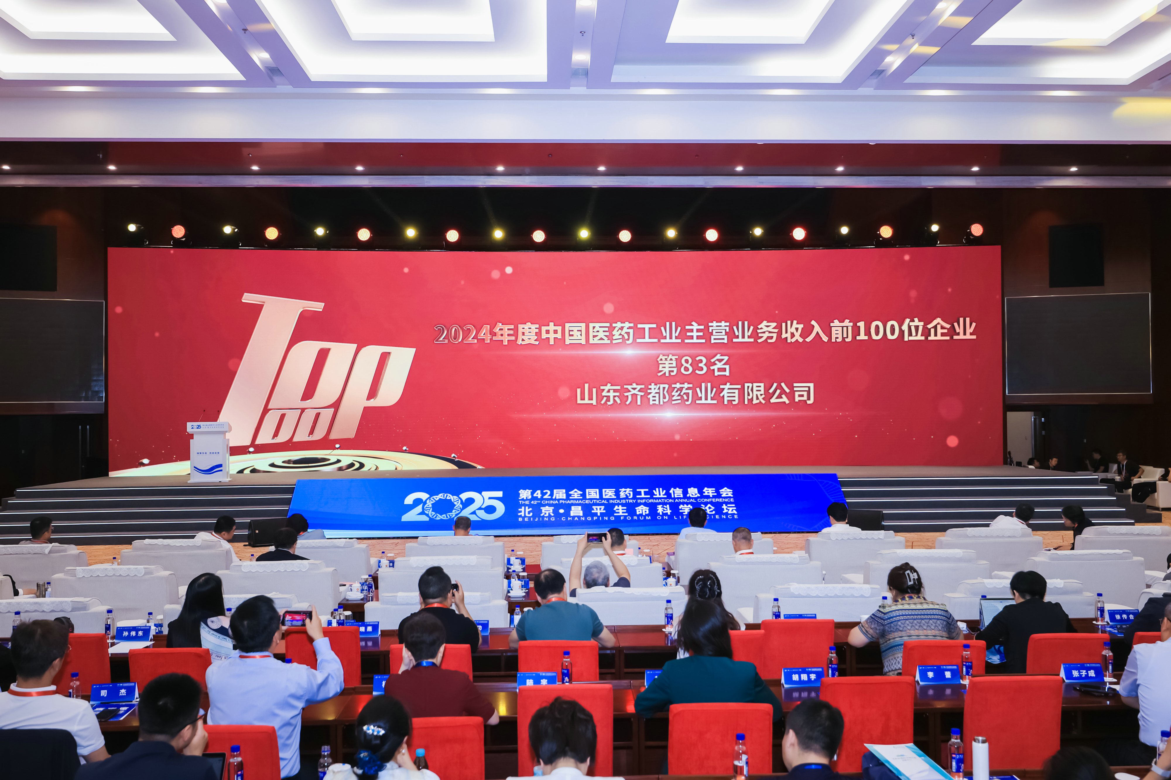 7月5日至7日,由中国医药工业信息中心组织的第42届全国医药工业信息年会、2025北京·昌平生命科学论坛在北京举行。会议权威发布“2024年度中国医药工业主营业务收入前100位企业”名单,齐都药业成功入选,排名第83位,同时荣登2025年中国医药工业企业投资价值观察榜单。
